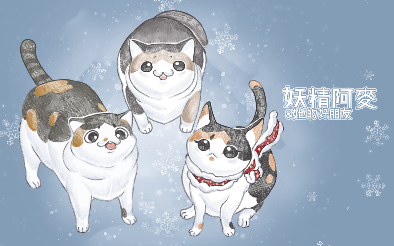 貓貓妖精阿麥與她的好朋友日常治癒故事,三隻貓一隻奴才的溫馨家庭。